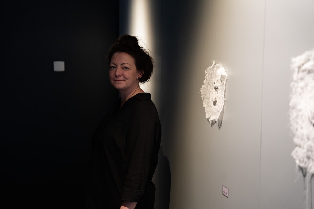 The residents of the museum’s collection are anonymous – with few exceptions their names, professions, life stories and even the cause of death are not known, but what the museum does have are the fragments of the most precious thing they once possessed – the body they lived in. Medical gauze is used as a base material to embroider on, not only because of its historical context, material purpose and textural qualities, but also because it is the one material that appears in the collection securing some body details. These portraits dismiss the anatomical reference and purpose in the collection, even the colour scheme associated with them as anatomical exhibits, is avoided, leaving only the facial features marked by the light and shadow. The titles of the work are their unique “name” in the collection – the registration number. These embroidered portraits linger between fragile and tough, hard but soft, living but dead, freed but enclosed, part but complete, piece but peaceful.
