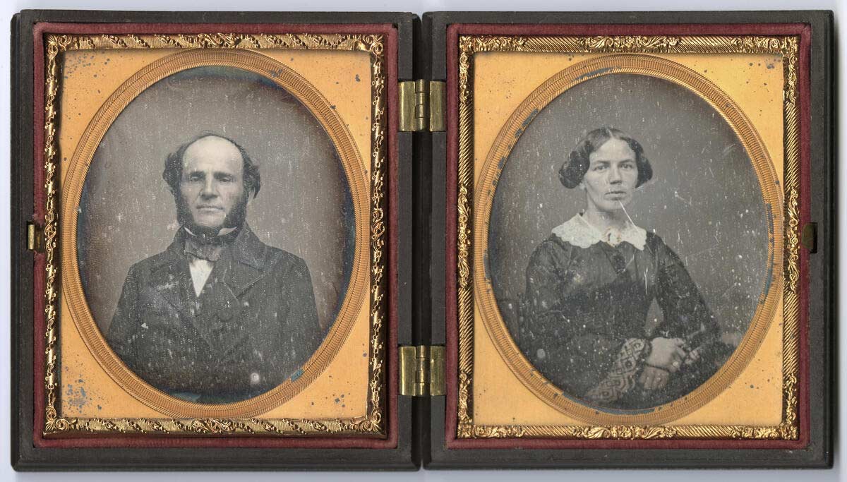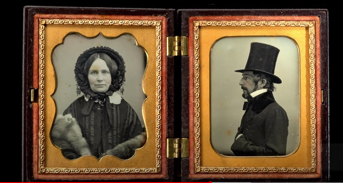 Why are the portraits in a box? Daguerreotypes are very rare due to their fragility. After the picture was taken, it was packed behind glass, decorated with metal framing and kept in highly crafted protective cases to stop light, air, moisture and time from attacking them. Because of that reason few of them still exist and only by a miracle can be seen today.