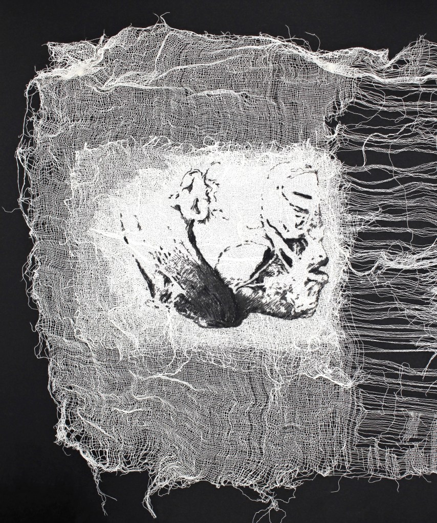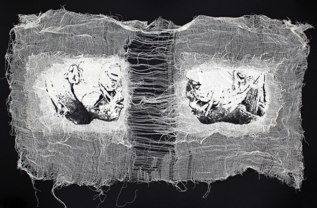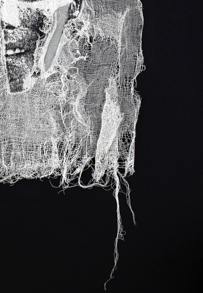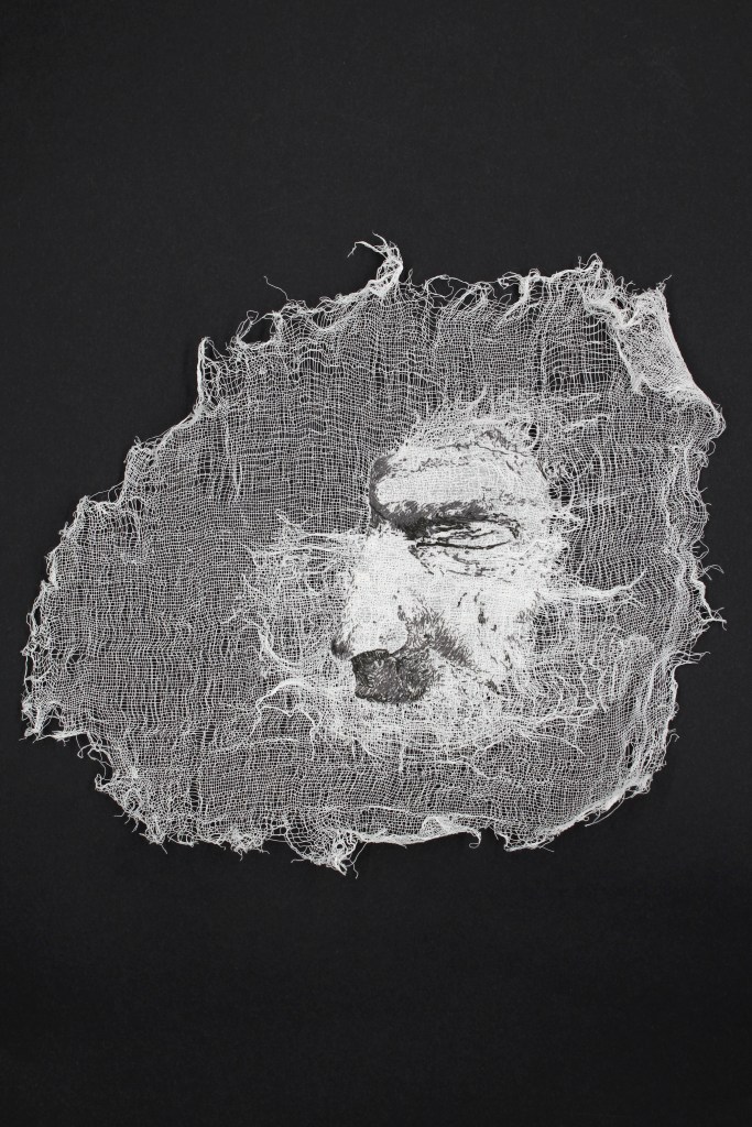In Riga is located an unusual museum – RSU Anatomy Museum. The museum is based on the first teaching collection used in anatomy studies in Latvia, which was created in the 1920’s and the 1930’s. The museum is open to everyone – the public is invited to look at what is usually seen only by anatomists or surgeons. There you will get to experience the diversity of human bodies, of skeletons, embryos, bones, body parts and organs exhibited there, their structure and how they vary in diseased and healthy form. Everything there is real. It also happens to be my part time job there and exactly that decision to work there became the turning point in my creative career as well. I created a series of embroidered portraits which show the fragments of human faces that I met face to face as wet specimens in the museum’s collection.